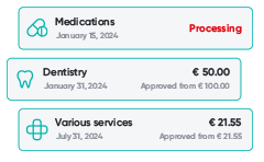 - We ensure convenient claim submission and fast indemnity disbursement when medical services have to be paid from personal funds;